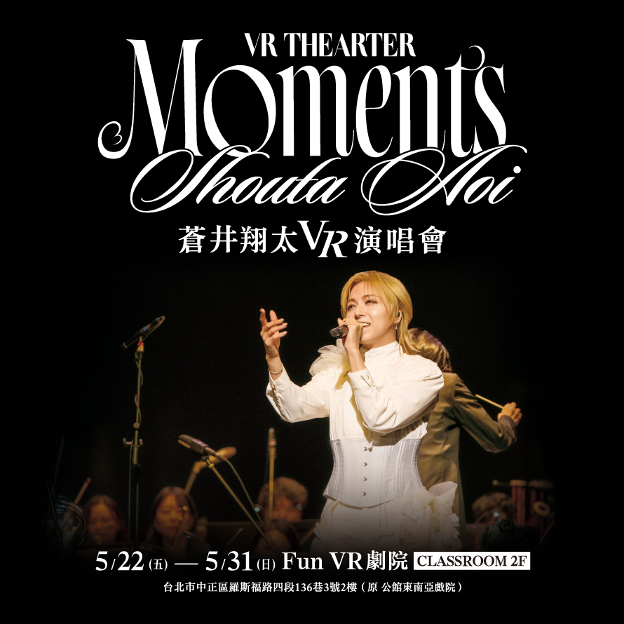 為了感謝每一位購票入場的觀眾,現場將贈送 「蒼井翔太 VR THEATER Moments」原創設計特典小卡(共3款,隨機贈送),作為珍貴紀念。這場結合尖端科技與現場音樂能量的VR 演唱會,是蒼井翔太首次挑戰的全新舞台形式,也是粉絲絕對不容錯過的沉浸式體驗。立即鎖定購票,與蒼井翔太一同進入音樂的奇幻世界,享受最極致的視覺與聽覺盛宴!