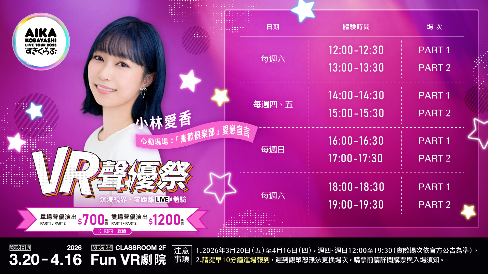 戴上VR裝置後,觀眾可體驗第一視角的零距離互動與應援臨場感,感受聲優舞台魅力與音樂感染力。
