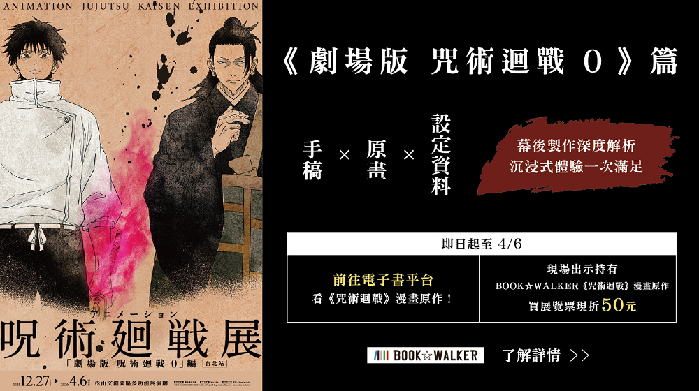 於 2026/3/6 - 2026/4/6 期間內至 「咒術迴戰展《劇場版 咒術迴戰 0》篇」