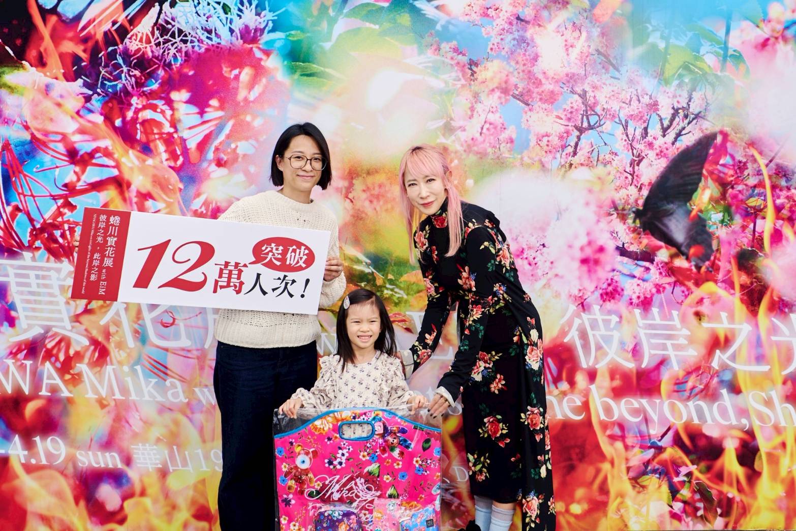 當天蜷川實花也與第12萬名幸運觀眾合影留念,她感性表示:「真的非常高興入場人數突破12萬人,這是我睽違10年在台北舉辦的大型個展,看到這麼多粉絲到場參觀,真的非常開心,希望今後還能到台北或其他城市舉辦,用我的創作與大家見面!」第12萬名幸運入場的觀眾黃小姐本身就是蜷川實花的忠實粉絲,特地利用週末時間帶女兒一起看展,看到蜷川實花無預警現身並親自送上禮物,黃小姐難掩興奮之情:「能見到蜷川老師本人實在是太開心了!從以前就非常喜歡老師的作品,像電影惡女花魁中的人物情感與美術設計都非常迷人,展場中可以更近一步感受到蜷川老師對於色彩運用的想法,很令人感動!」她最後更不忘強力推薦一定要來看展。